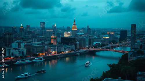 © Svitlana, Fototapeta premium A city bathed in rich deep teal, exuding luxury and vibrancy.jpg