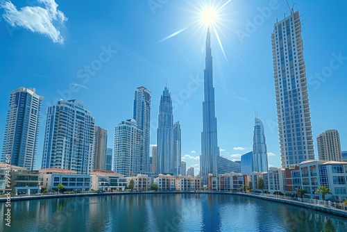 © visoot, Obraz premium A city downtown area with prominent towers standing tall.