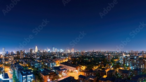 © Petchladda, Fototapeta premium A city nightscape with buildings powered by renewable energy.