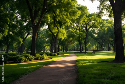 © Ployker, Obraz premium A City Park Filled with Trees, Plants, and Wildlife