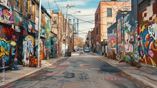 Fototapeta premium A city road with street art and murals, adding color and creativity to the urban landscape.