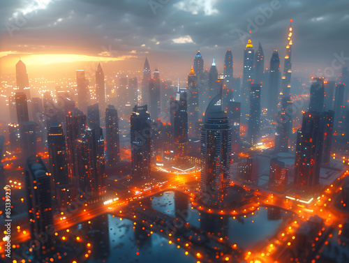 Fototapeta premium a city's skyline at night, bathed in the glow of towering skyscrapers and...