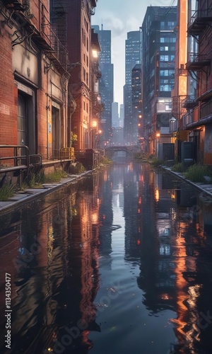 © methinee, Fototapeta premium A city's water supply contaminated by human waste, polluted water, waterlogged buildings