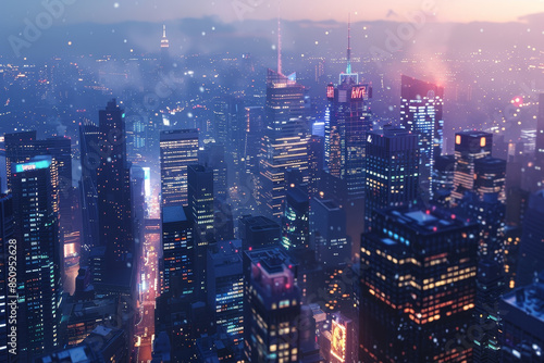 © Babb, Fototapeta premium A city skyline at night with a blue sky in the background