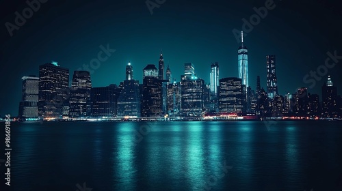 © otwdesign, Fototapeta premium A City Skyline Illuminated at Night with Reflections on the Water