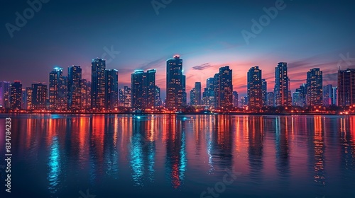 Fototapeta premium A city skyline illuminated by energy-efficient LED lights, symbolizing the...