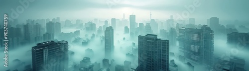 Naklejka premium A city skyline is covered in fog, giving the impression of a desolate and...
