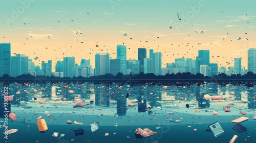 © CreativeLoom, Obraz premium A city skyline is reflected in a body of water