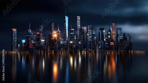 © Babb, Fototapeta premium A city skyline is reflected in the water