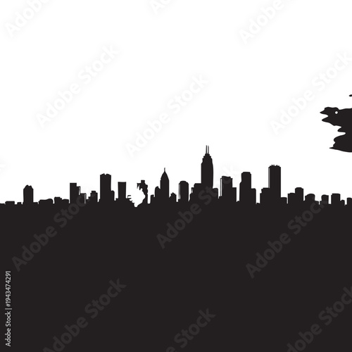Fototapeta premium A city skyline silhouette at golden hour with buildings standing tall