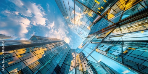 Fototapeta premium A city skyline with a blue sky and clouds