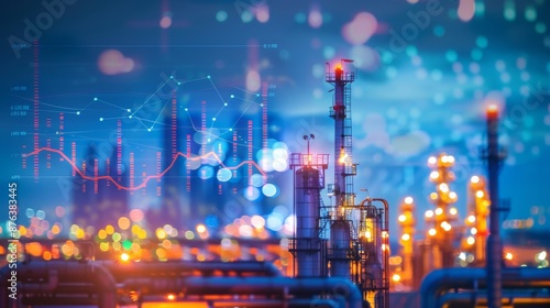© OZTOCOOL, Naklejka premium A city skyline with a large industrial plant in the background