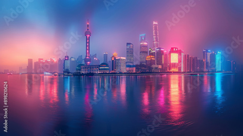 © jr-art, Fototapeta premium A city skyline with a tall tower in the background