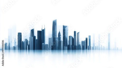 © starush, Obraz premium A city skyline with buildings in blue and white, AI