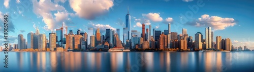 © Woranittha, Fototapeta premium A city skyline with construction cranes, showing urban growth