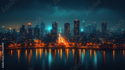© NhV, Fototapeta premium a city skyline with lights on the road