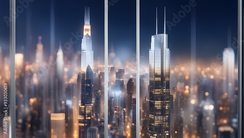 © Sutarto Stock, Fototapeta premium A city skyline with tall buildings and a city view