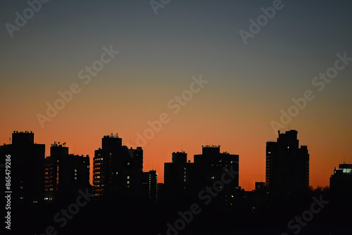 © Kitta Studio, Fototapeta premium a city skyline with the sun setting behind it