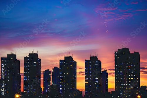 © Kitta Studio, Fototapeta premium a city skyline with the sun setting behind it
