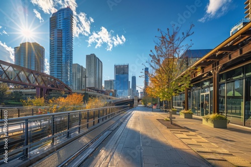 © Andrei, Obraz premium A city street with a bridge and a sidewalk