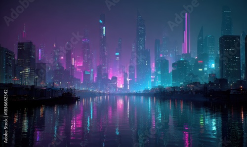 © TheoTheWizard, Fototapeta premium A city with a river running through it