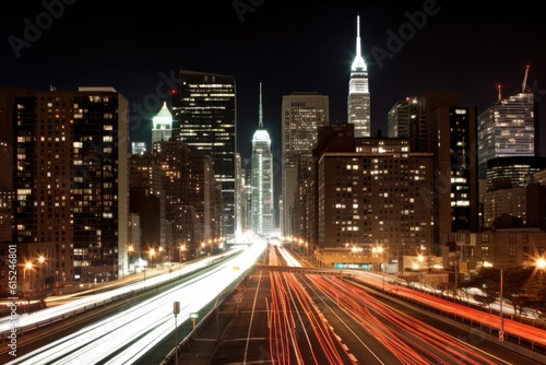 Fototapeta premium A cityscape at night, illuminated by the glow of city lights. Generative AI