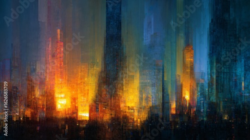© artestdrawing, Obraz premium A cityscape at night, rendered with vibrant colors and a painterly style.