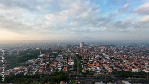 © MAQNet, Obraz premium A cityscape with a cloudy sky and tall buildings