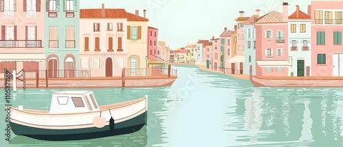 © SJarkCube, Fototapeta premium A cityscape with a large sun in the sky