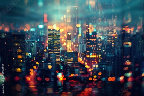 © shobakhul, Obraz premium A cityscape with a lot of lights and a blurry background, generative ai image