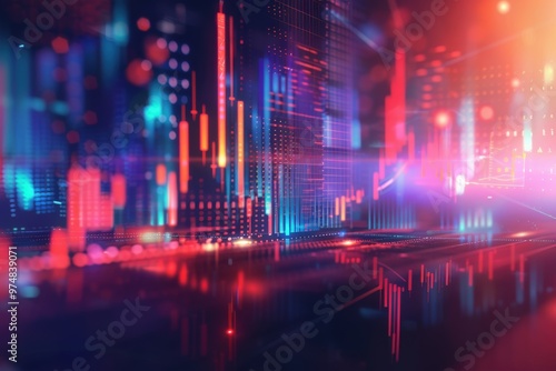 © shobakhul, Obraz premium A cityscape with a lot of red and blue lights, generative ai image