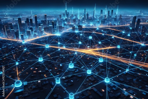 Fototapeta premium A cityscape with a network of lights and a city skyline