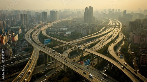 © Pannee, Fototapeta premium A cityscape with interconnected roads, smart sensors, and real-time traffic analytics.