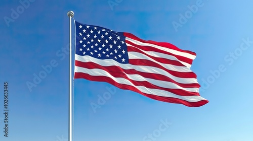 Naklejka premium A classic American flag waving gently in the breeze against a clear blue sky