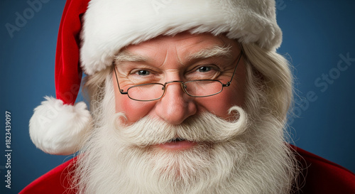 Naklejka premium A classic and joyful portrait of Santa Claus, beaming with holiday cheer and...