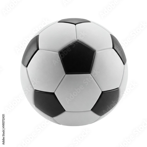 Fototapeta premium A classic black and white soccer ball ready for the big game, perfectly round and detailed against a plain white background.