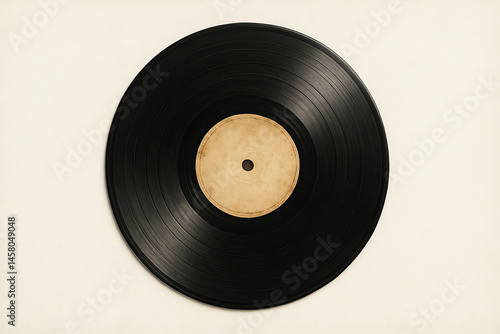 © Alex, Obraz premium A classic black vinyl record captured from an overhead view, showcasing its smooth surface and central label, ideal for music lovers, nostalgia, and retro-themed projects.