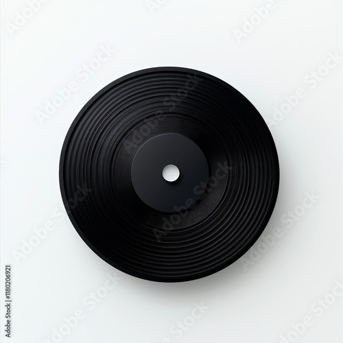 Obraz premium A classic black vinyl record rests flat on a white surface, emphasizing its...
