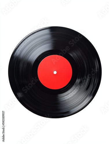 Fototapeta premium A classic black vinyl record with a red center, showcasing timeless music and...
