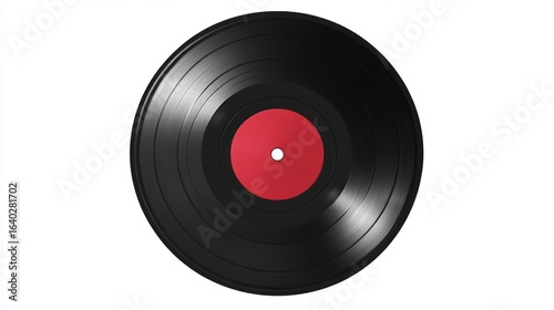 Fototapeta premium A classic black vinyl record with a vibrant red label, showcasing its grooves...