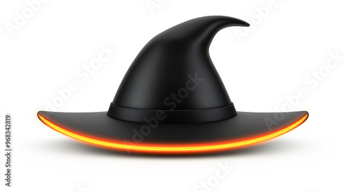 Fototapeta premium A classic black witch hat with an orange glow, perfect for Halloween decorations or costume accessories.
