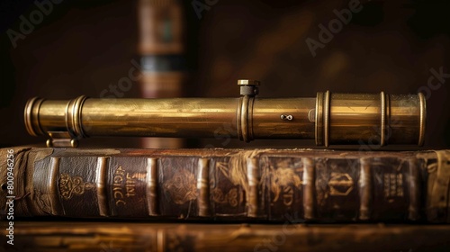 © Lal, Naklejka premium A classic brass telescope on a vintage old book