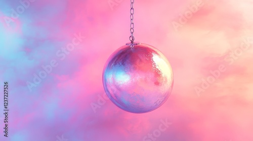 Fototapeta premium A classic disco ball with bright, colorful reflections, set against a pink...