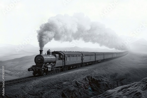 Obraz premium A classic engraving of a Victorian-era steam locomotive chugging along a...