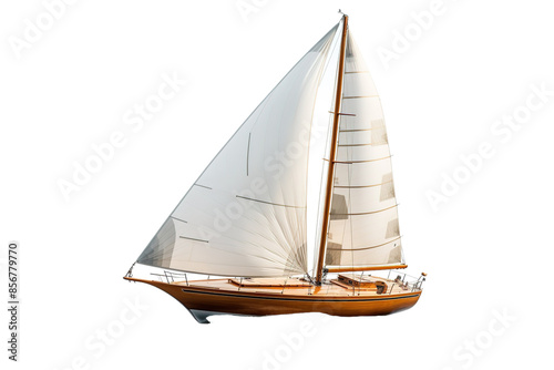 © Masood, Fototapeta premium A Classic Sailboat Navigates a Calm Sea on a Sunny Day on a Clear PNG or White Background.