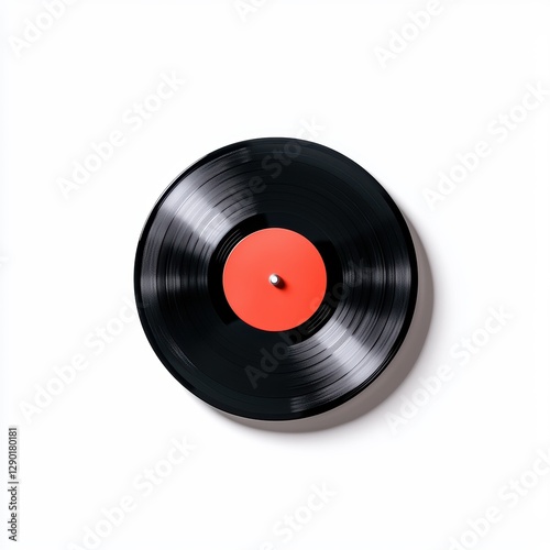 © Thanawat, Obraz premium A classic vinyl record with a red center on a clean white background, symbolizing vintage music and nostalgia.