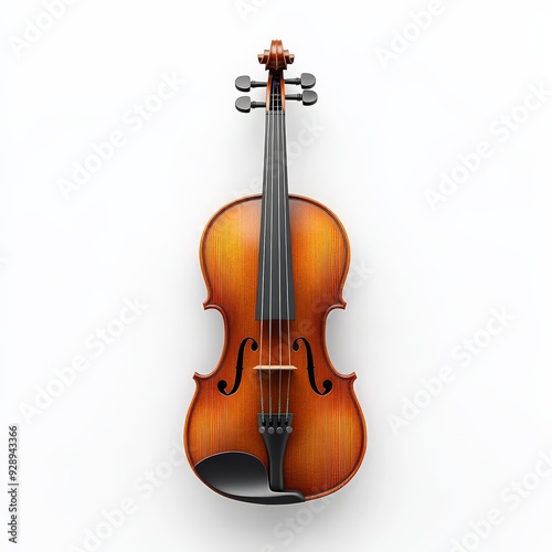 Fototapeta premium A classic violin, musical instrument, hyper-detailed rendering, wooden body with strings, isolated on white background