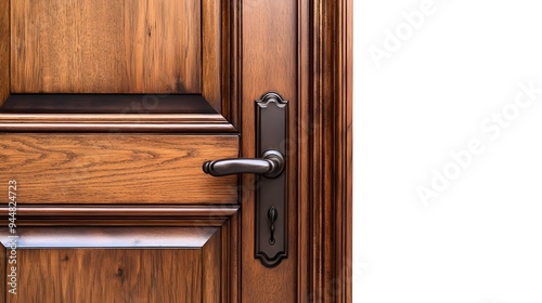 Obraz premium 37. **A classic wooden door with a vintage handle, isolated on a pristine...