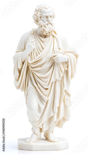Naklejka premium A classical-style statue of a bearded man in flowing robes, standing with...
