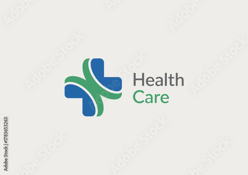 © zhen, Fototapeta premium A clean and modern healthcare logo featuring a green and blue plus sign, representing health services and the medical industry with a professional touch.